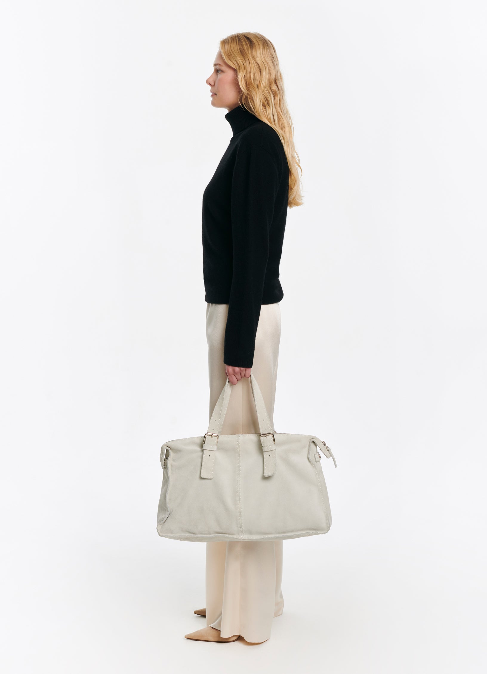 The Signature handbag is a timeless accessory crafted from soft ecru natural nubuck leather, designed with both practicality and style in mind. It features three compartments, including two zipper pockets inside, and a convenient mobile pocket. The middle compartment is secured with a zipper, dividing the other two. One compartment also includes a sewn-in zipper pocket. The entire handbag is elegantly lined for a luxurious finish.